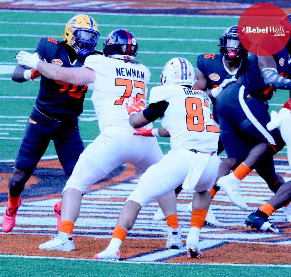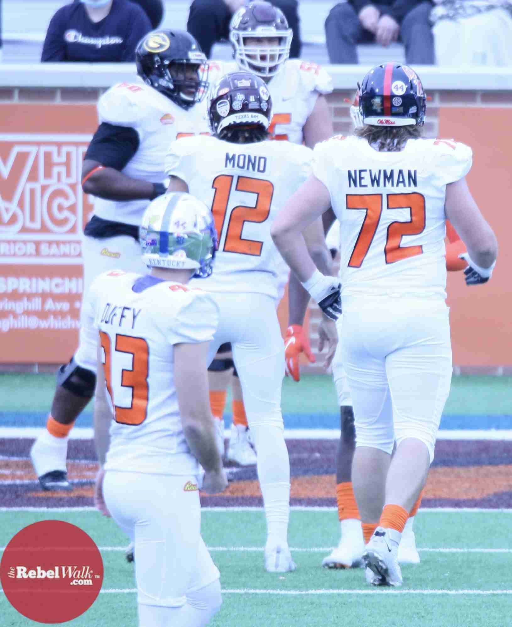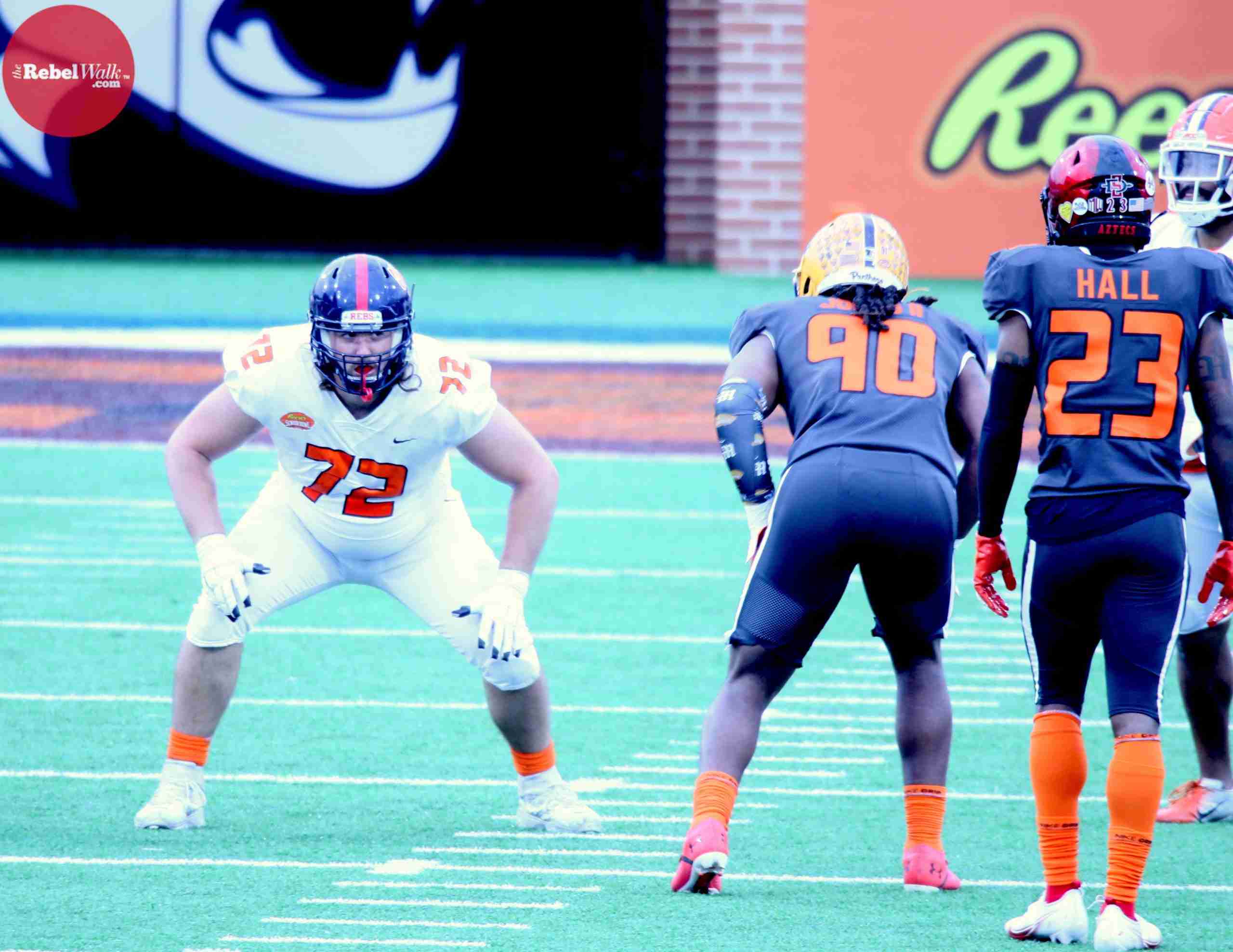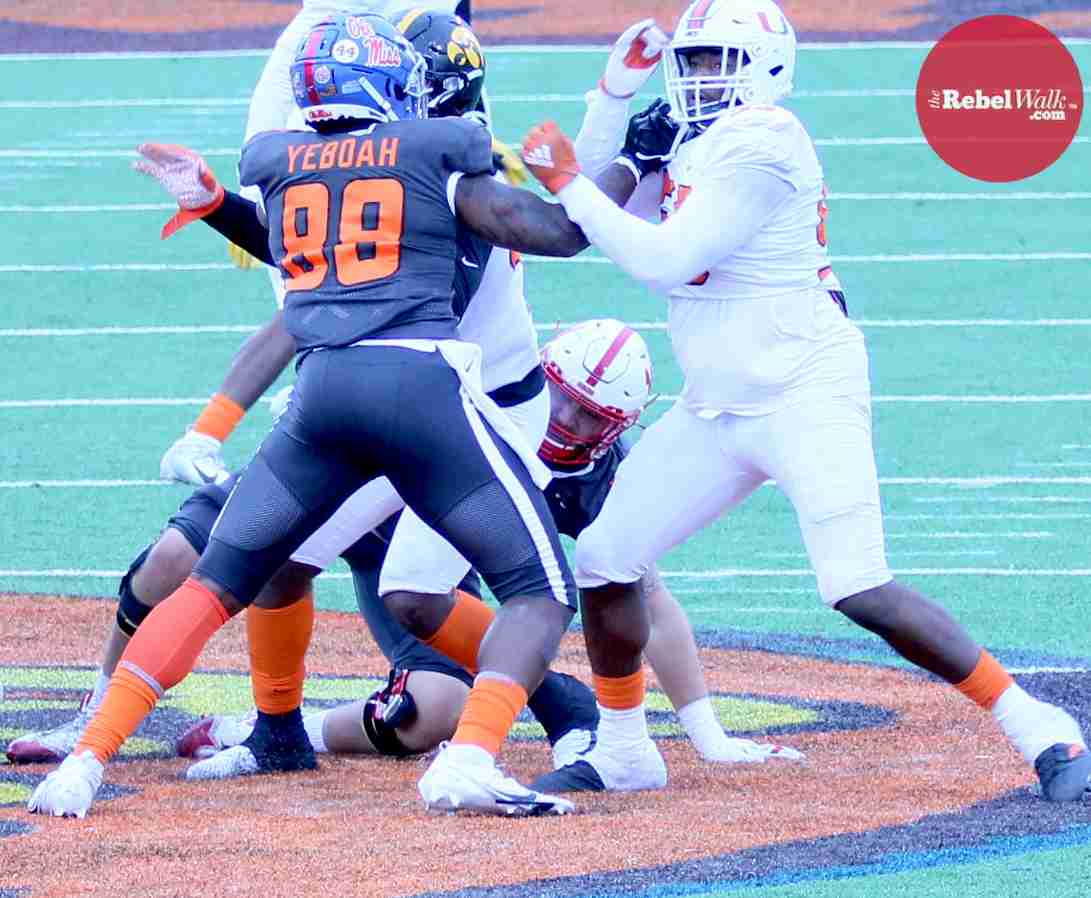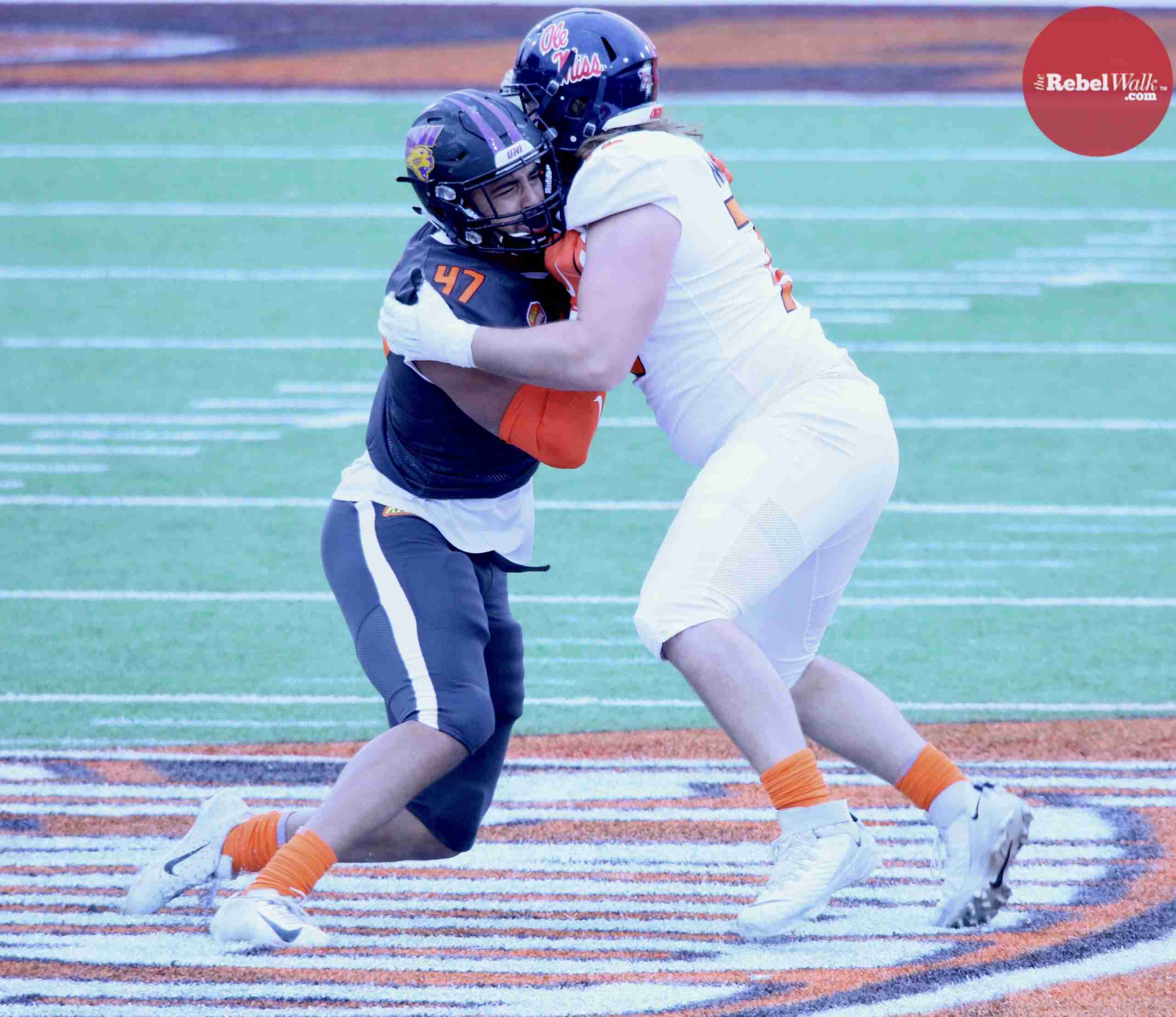 MOBILE — Ole Miss offensive lineman Royce Newman and tight end Kenny Yeboah were invited to participate in the 2021 Reese’s Senior Bowl, and our Amanda Swain was on hand in Mobile to catch the two Rebels in action.