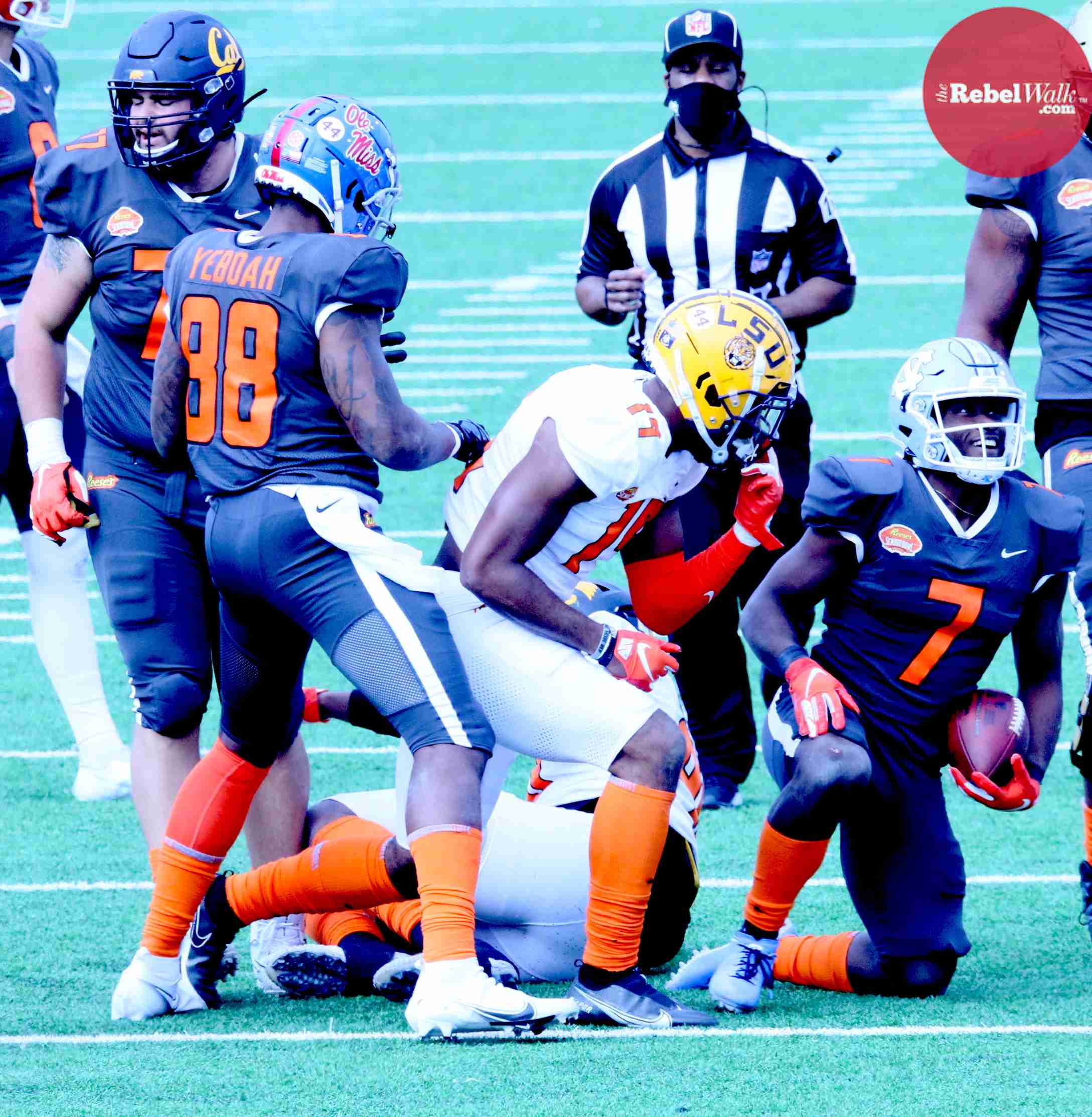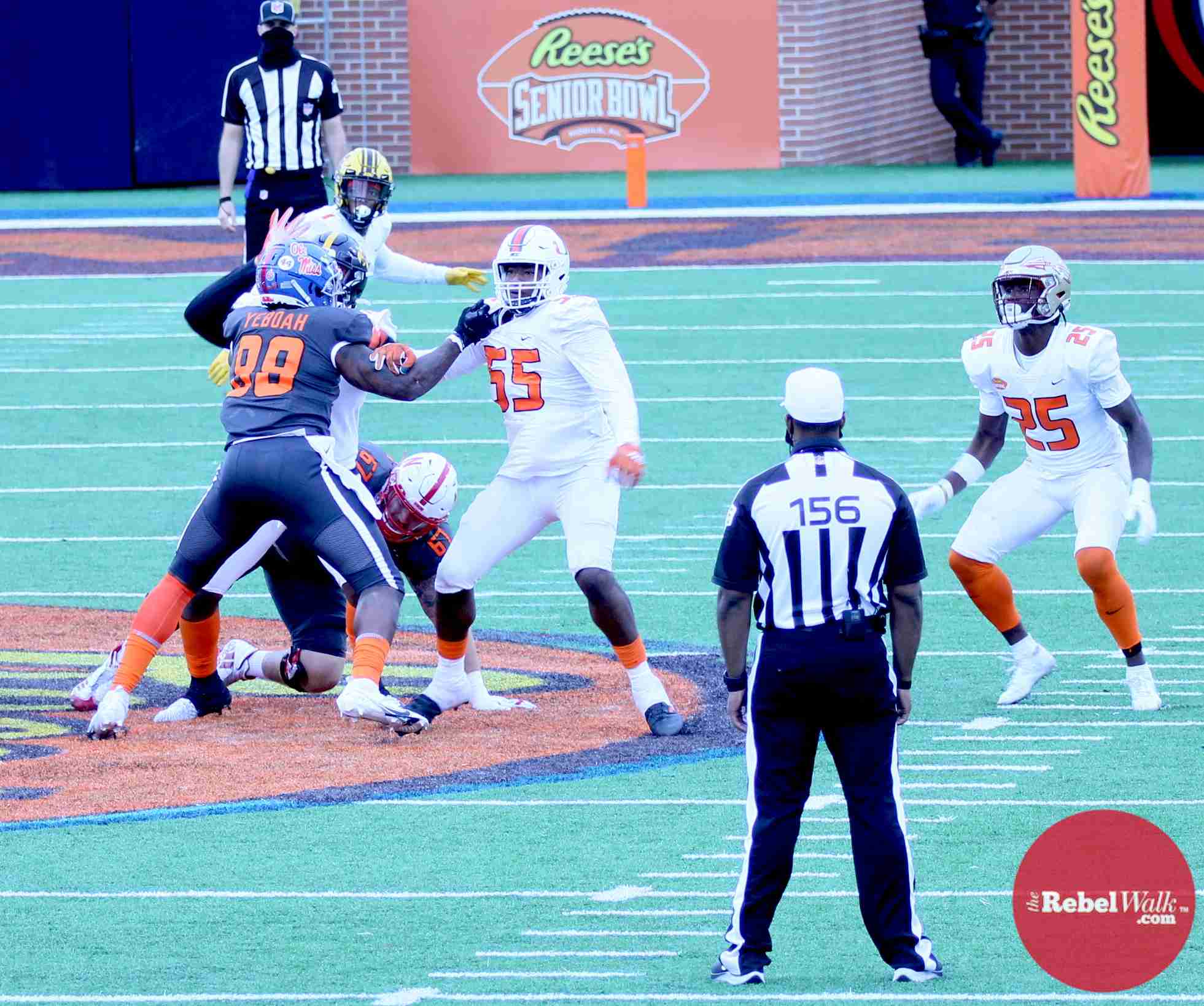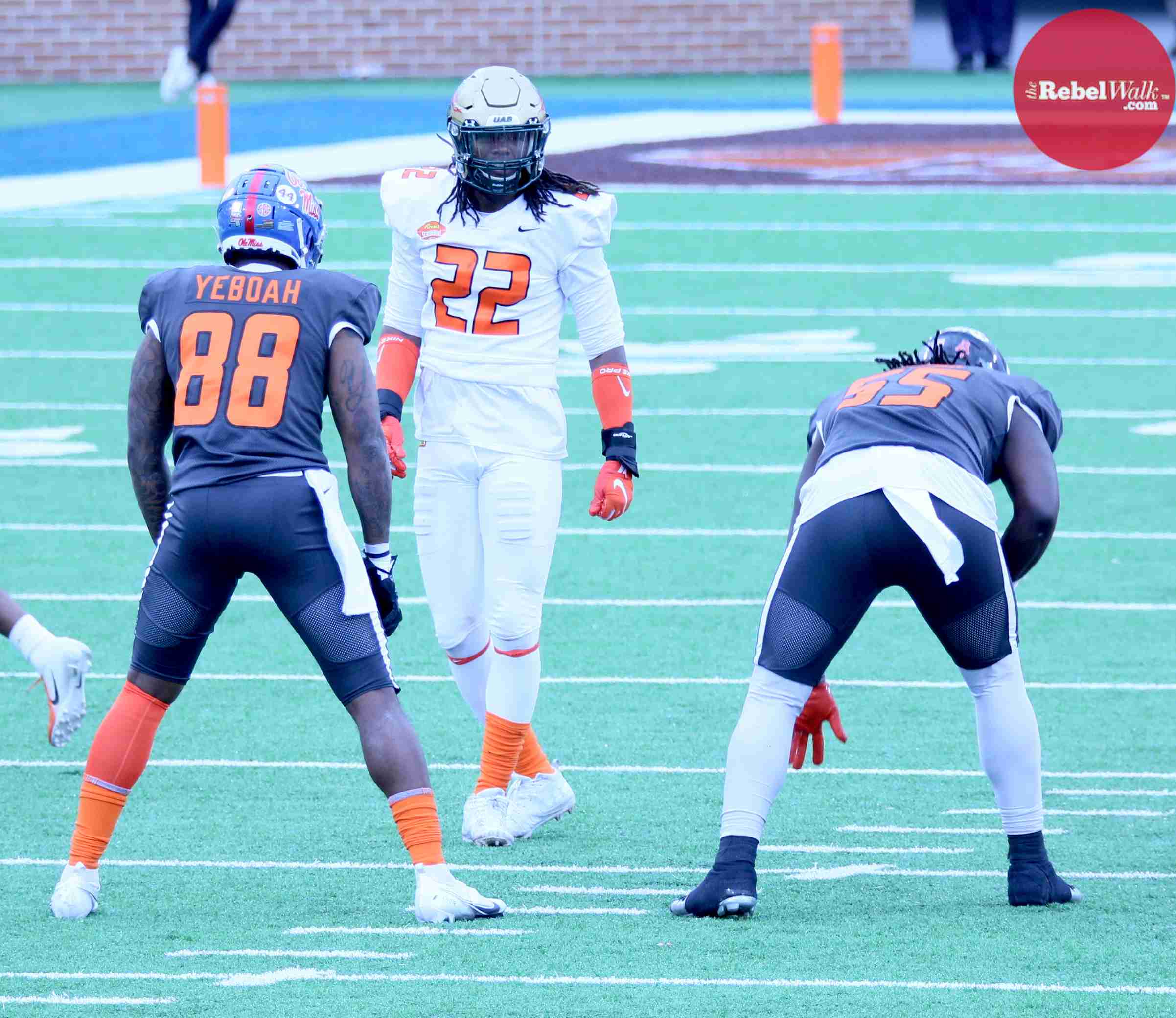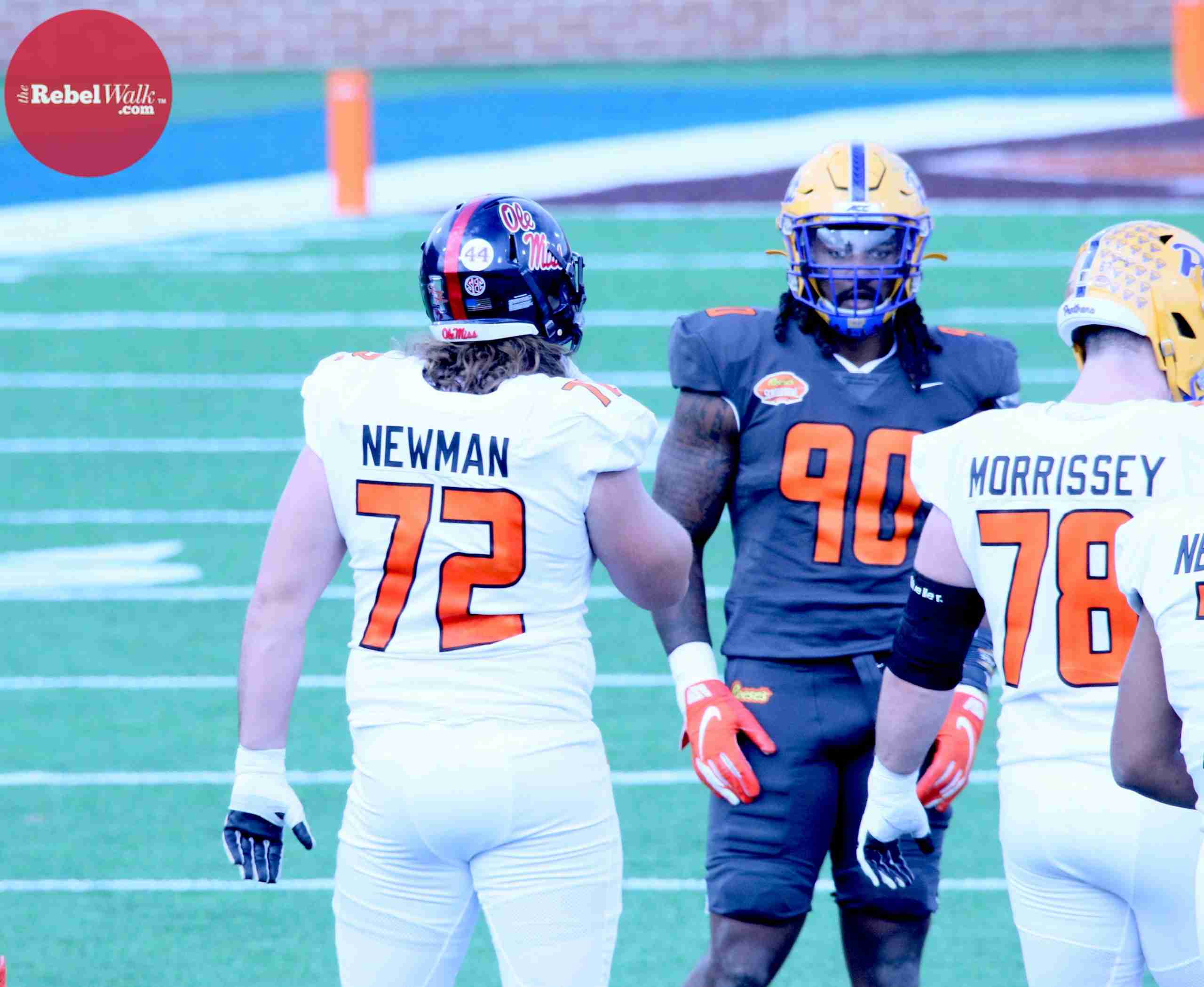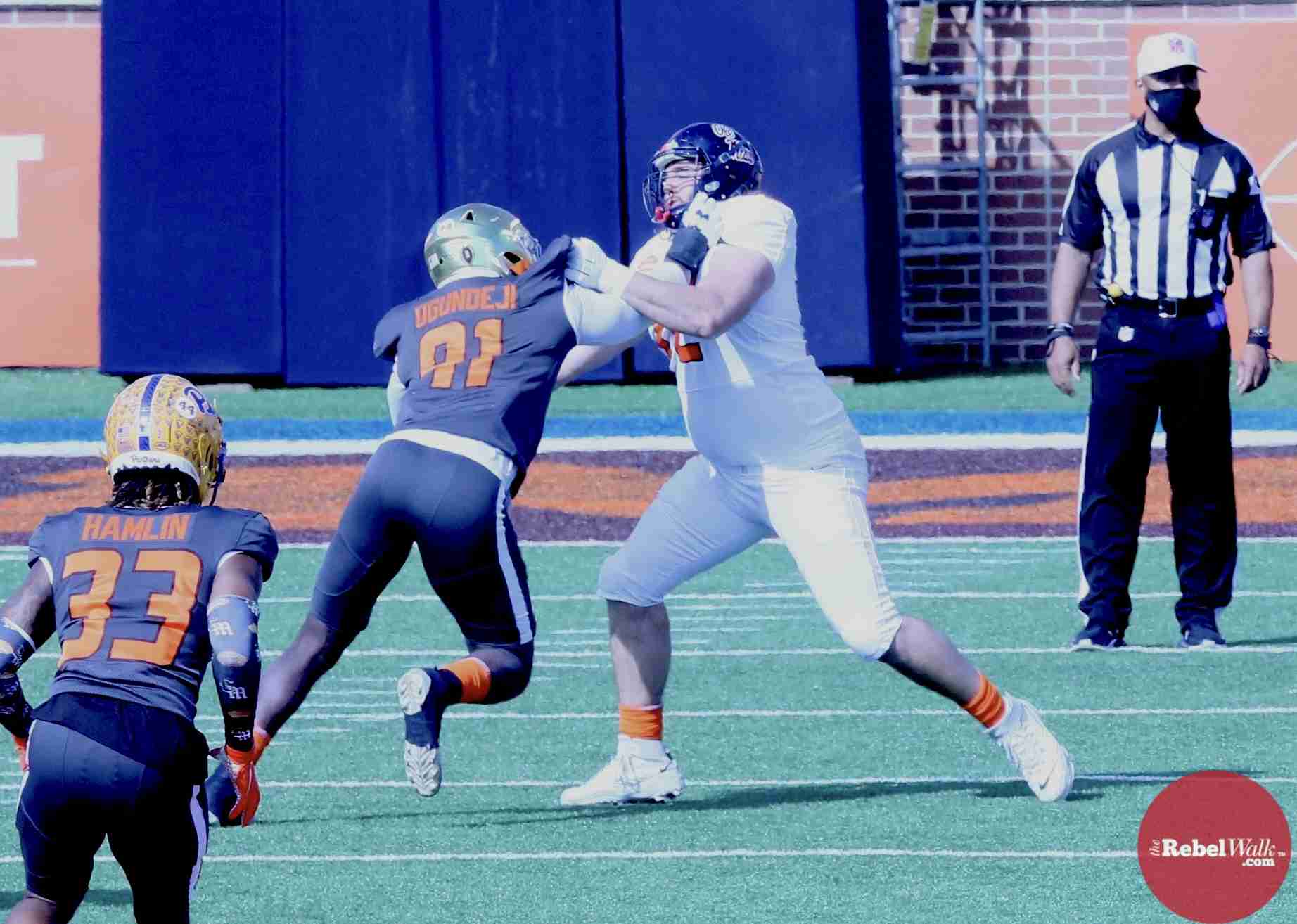 MOBILE — Ole Miss offensive lineman Royce Newman and tight end Kenny Yeboah were invited to participate in the 2021 Reese’s Senior Bowl, and our Amanda Swain was on hand in Mobile to catch the two Rebels in action.